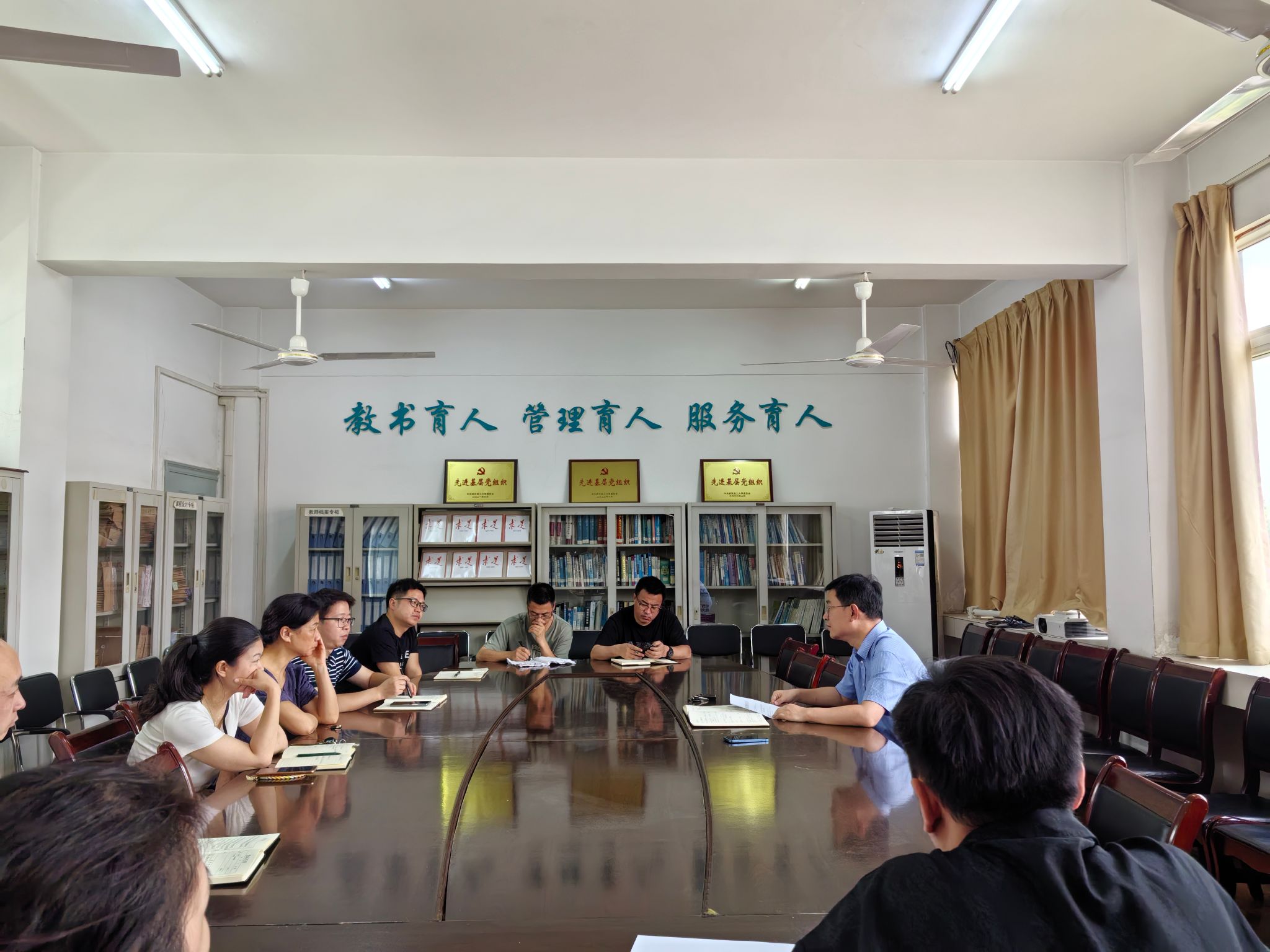 同时会上还师生党支部书记就团内推优和发展对象等相关业务知识进行了培训。各支部开展了互学互检,重点检查了支部手册、教职工理论学习记录本、党员档案材料,并提出了合理的改进建议。